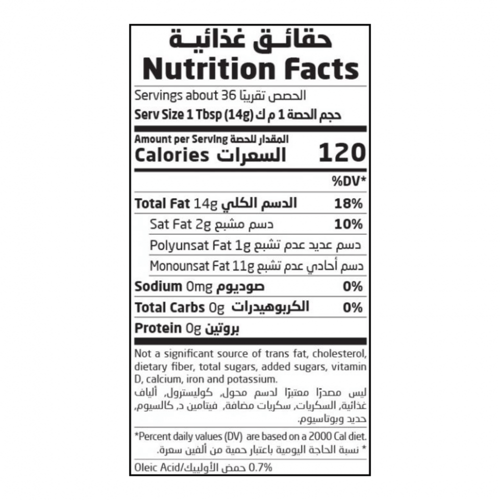 المكونات: زيت زيتون نقي عضوي.عصرة ميكانيكية باردة - غير مكرر.